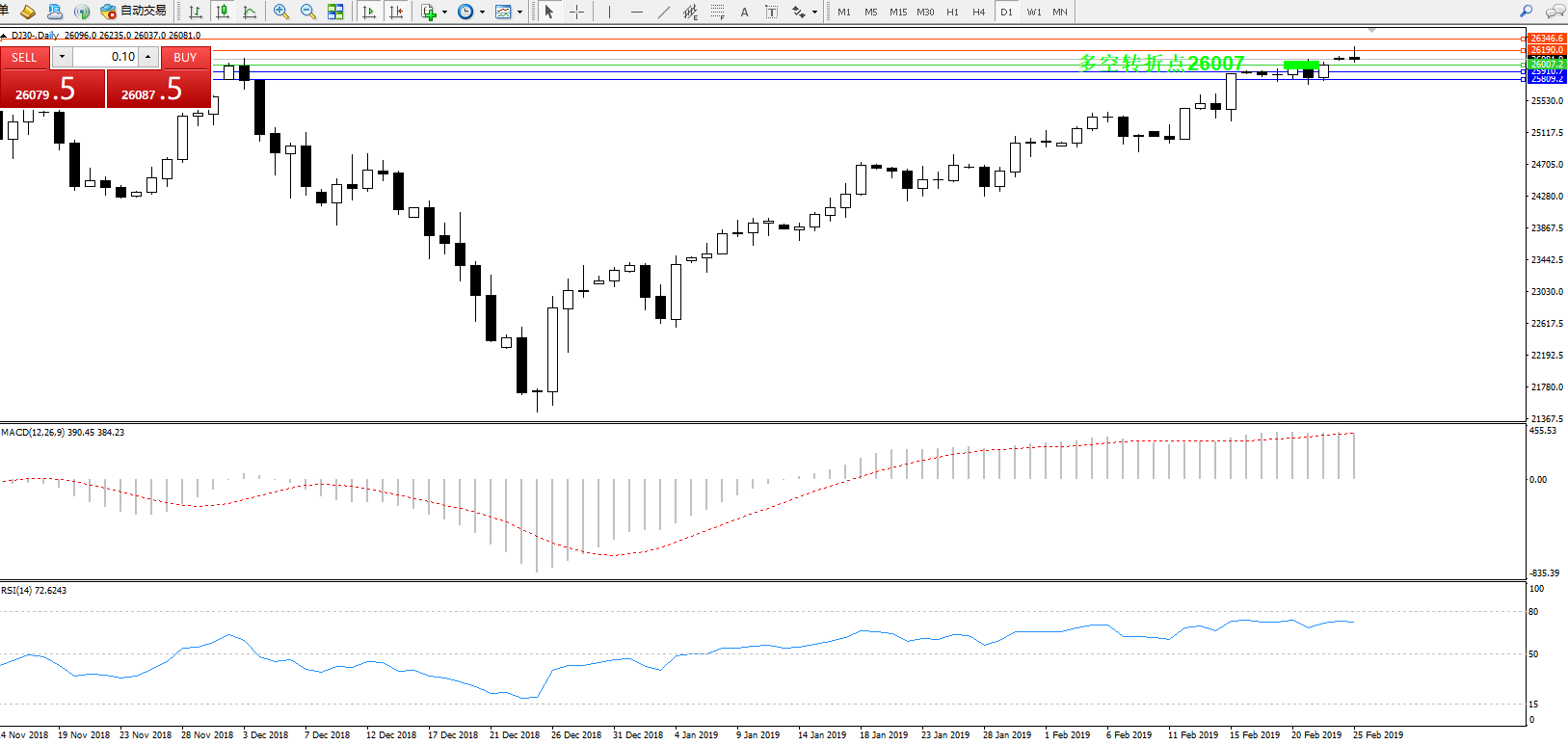 美国股市周一收盘上涨,但摆脱了盘中高位,此前美国总统特朗普称将推迟对中国输美商品加征关税,两国接近达成贸易协议。道琼斯工业平均指数收涨60.14点,涨幅0.23%,报26091.95点。美联储发布的半年度货币政策报告显示,美国经济在2018年下半年保持“稳健”增长,全年扩张可能“略低于”3%,但消费者和企业支出已开始走软。本周还将迎来美联储主席鲍威尔在国会的证词,投资者需要予以关注。