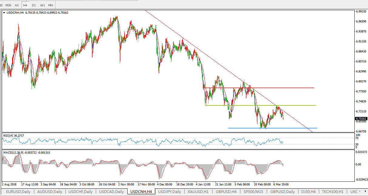 美元兑人民币USDCNH 4小时图: