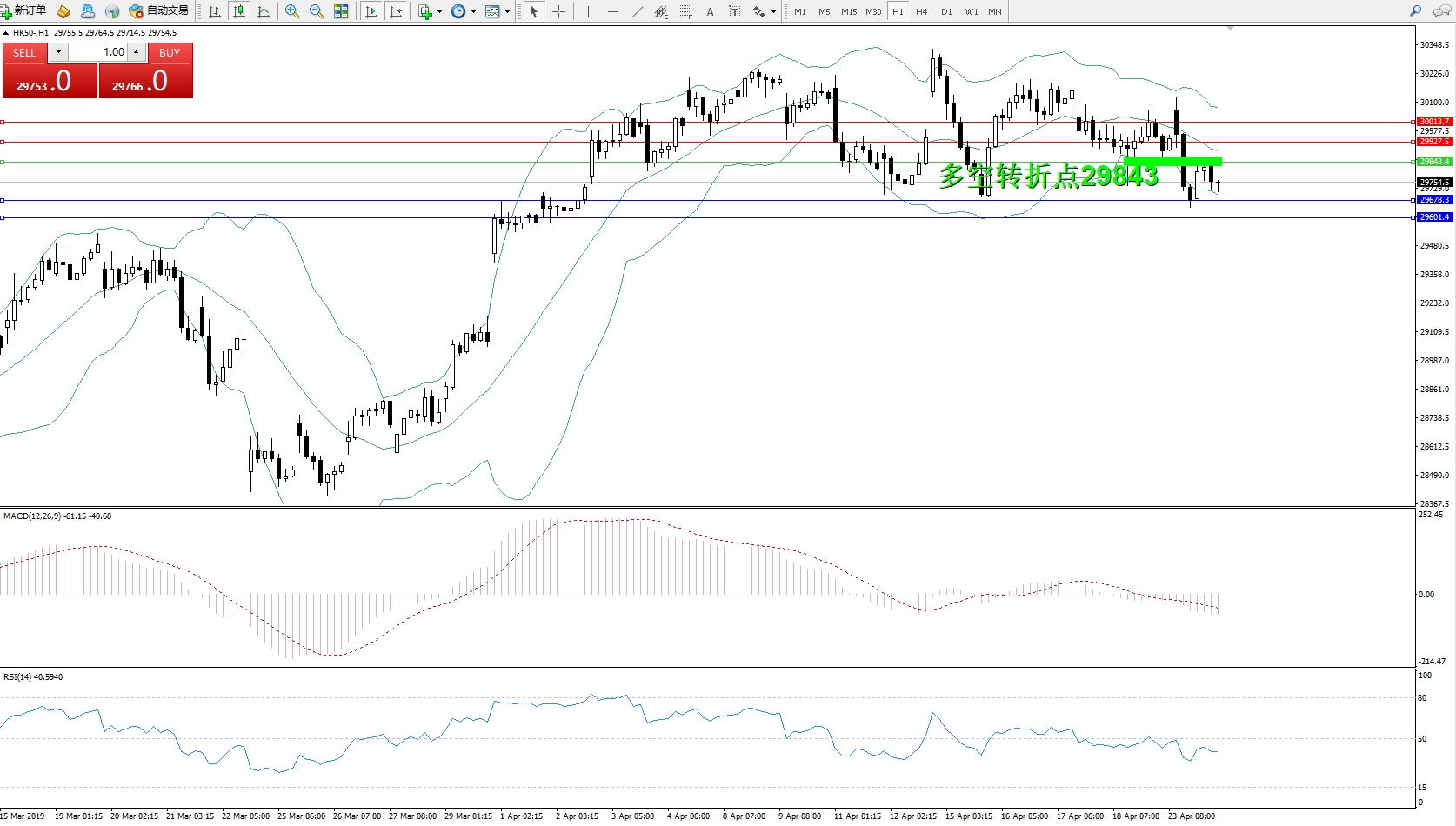 恒指HK50 ——1小时K线图显示:
