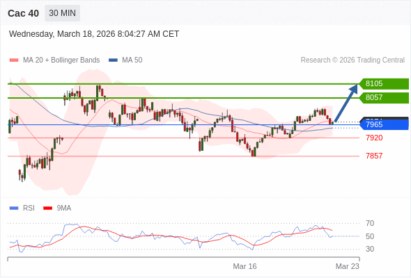 在 7965 之上,看涨,目标价位为 8057 ,然后为 8105 。