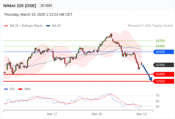 在 54100 之下,看跌,目标价位为 52880 ,然后为 52500 。