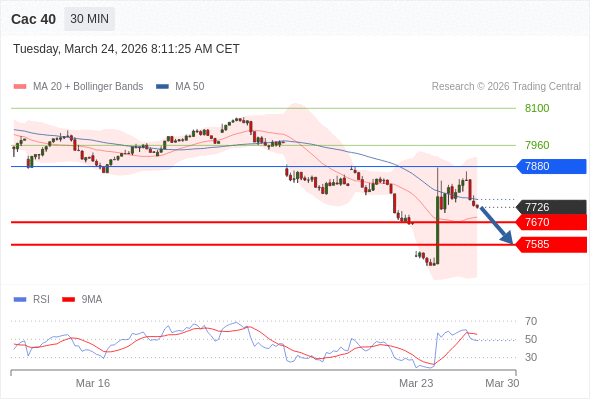 在 7880 之下,看跌,目标价位为 7670 ,然后为 7585 。