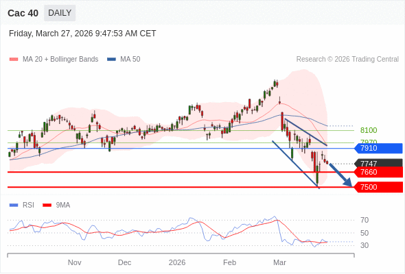 在 7910 之下,看跌,目标价位为 7660 ,然后为 7500 。