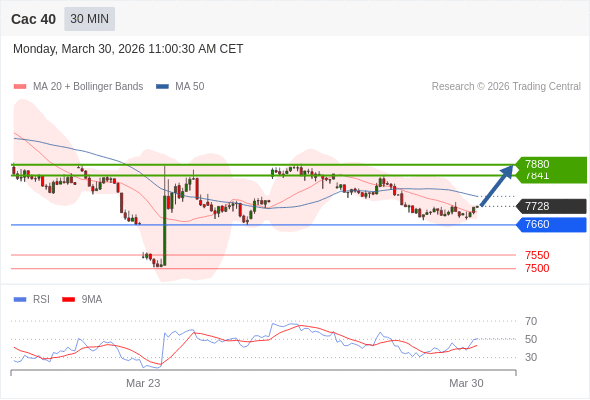 在 7660 之上,看涨,目标价位为 7841 ,然后为 7880 。