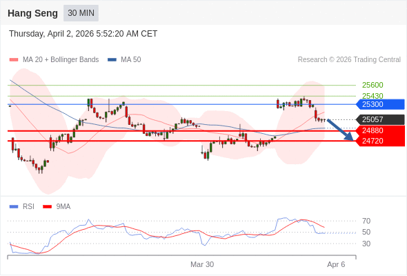 在 25300 之下,看跌,目标价位为 24880 ,然后为 24720 。