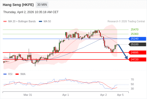 在 25240 之下,看跌,目标价位为 24895 ,然后为 24720 。