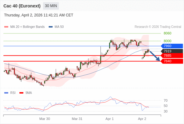 在 7960 之下,看跌,目标价位为 7885 ,然后为 7840 。