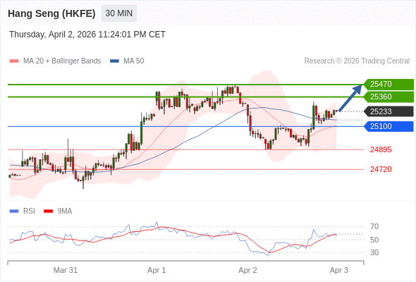 在 25100 之上,看涨,目标价位为 25360 ,然后为 25470 。