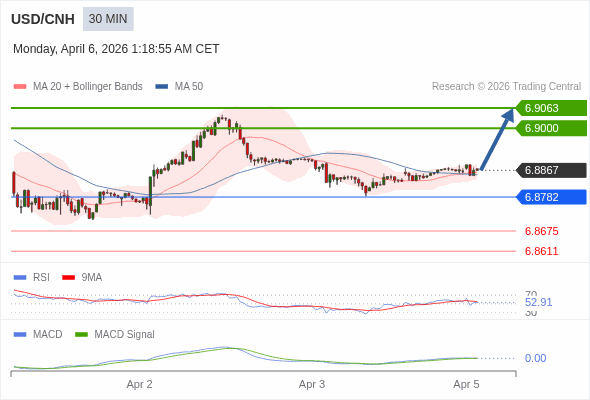 交易策略: 看涨,当 6.8782 为支撑位。