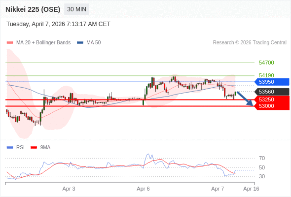 在 53950 之下,看跌,目标价位为 53250 ,然后为 53000 。