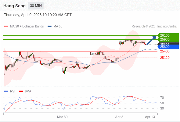 恒生指数 当日内: 在25600之上,看涨。