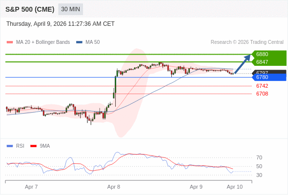 在 6780 之上,看涨,目标价位为 6847 ,然后为 6880 。