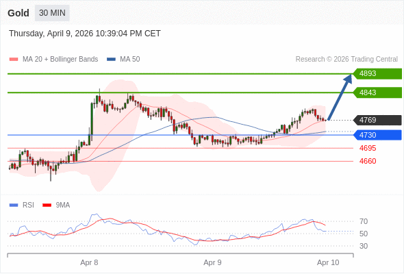 在 4730 之上,看涨,目标价位为 4843 ,然后为 4893 。