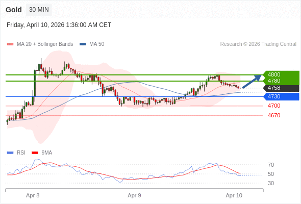 在 4730 之上,看涨,目标价位为 4780 ,然后为 4800 。