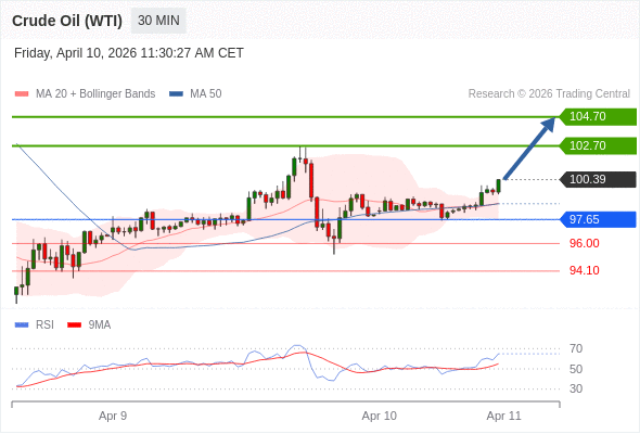 在 97.65 之上,看涨,目标价位为 102.70 ,然后为 104.70 。
