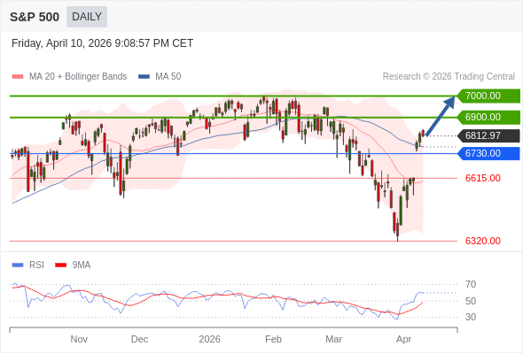 在 6730.00 之上,看涨,目标价位为 6900.00 ,然后为 7000.00 。