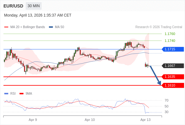 在 1.1715 之下,看跌,目标价位为 1.1635 ,然后为 1.1610 。