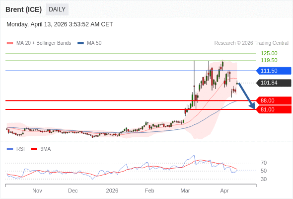 交易策略: 在 111.50 之下,看跌,目标价位为 88.00 ,然后为 81.00 。