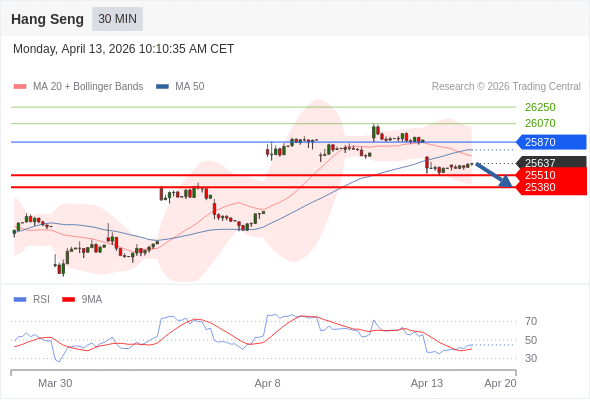 恒生指数 当日内: 目标位为25380。