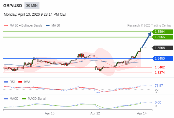 替代方案: 在1.3450以下,期待1.3402和1.3374。