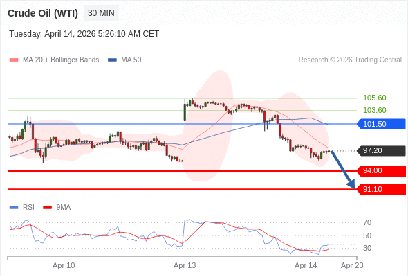 在 101.50 之下,看跌,目标价位为 94.00 ,然后为 91.10 。