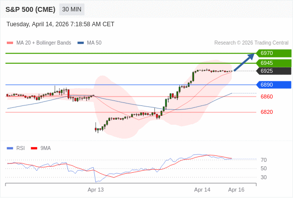 在 6890 之上,看涨,目标价位为 6945 ,然后为 6970 。