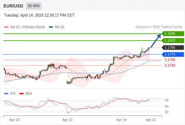 欧元/美元 当日内: 进一步上涨。