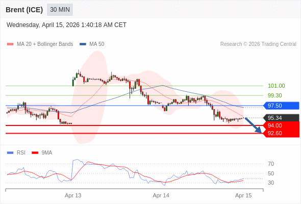 交易策略: 在 97.50 之下,看跌,目标价位为 94.00 ,然后为 92.60 。