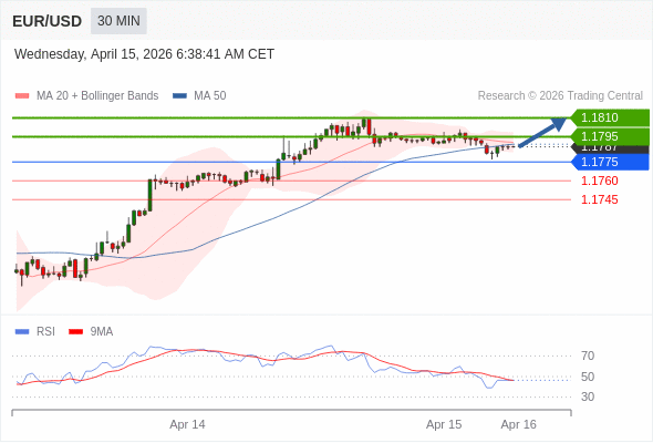 在 1.1775 之上,看涨,目标价位为 1.1795 ,然后为 1.1810 。