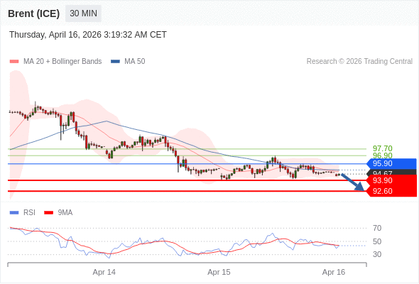在 95.90 之下,看跌,目标价位为 93.90 ,然后为 92.60 。
