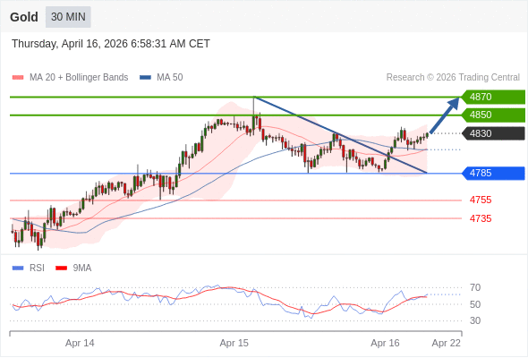 在 4785 之上,看涨,目标价位为 4850 ,然后为 4870 。