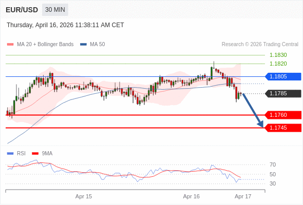 在 1.1805 之下,看跌,目标价位为 1.1760 ,然后为 1.1745 。