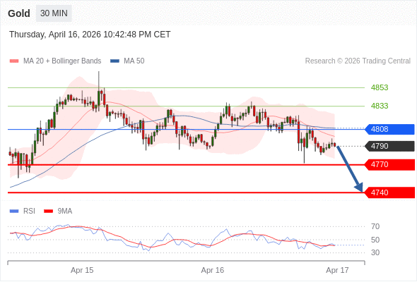 在 4808 之下,看跌,目标价位为 4770 ,然后为 4740 。