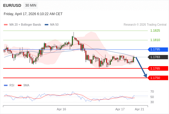 在 1.1795 之下,看跌,目标价位为 1.1765 ,然后为 1.1750 。