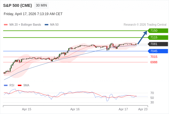 在 7045 之上,看涨,目标价位为 7115 ,然后为 7150 。