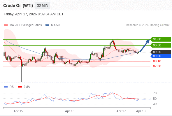 在 89.00 之上,看涨,目标价位为 90.80 ,然后为 91.80 。