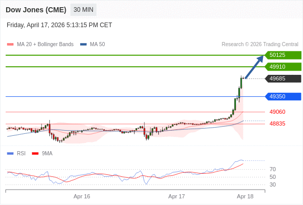 在 49350 之上,看涨,目标价位为 49910 ,然后为 50125 。
