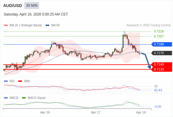 交易策略: 看跌,在 0.7189 之下。