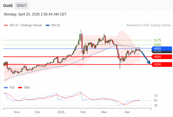 在 4855 之下,看跌,目标价位为 4550 ,然后为 4260 。