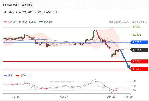 在 1.1785 之下,看跌,目标价位为 1.1710 ,然后为 1.1680 。