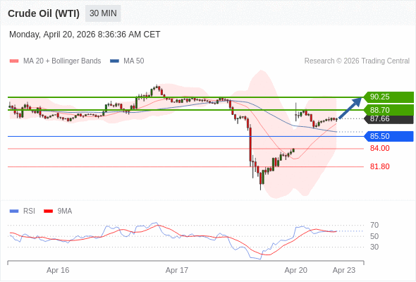 在 85.50 之上,看涨,目标价位为 88.70 ,然后为 90.25 。