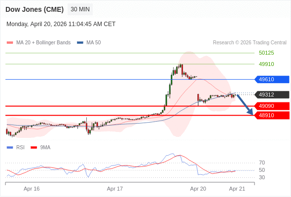 在 49610 之下,看跌,目标价位为 49090 ,然后为 48910 。