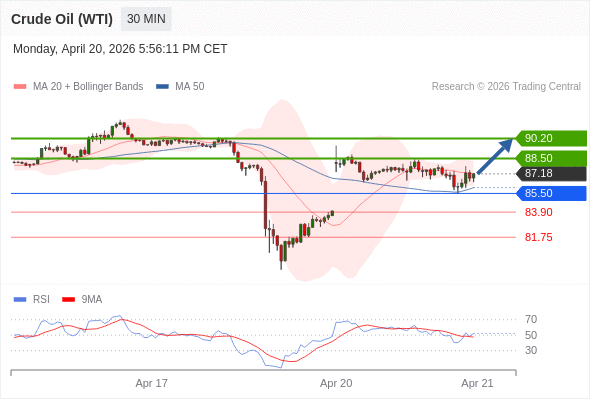 在 85.50 之上,看涨,目标价位为 88.50 ,然后为 90.20 。