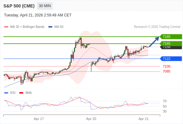 在 7122 之上,看涨,目标价位为 7165 ,然后为 7185 。