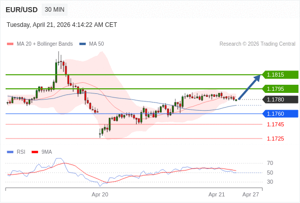 在 1.1760 之上,看涨,目标价位为 1.1795 ,然后为 1.1815 。