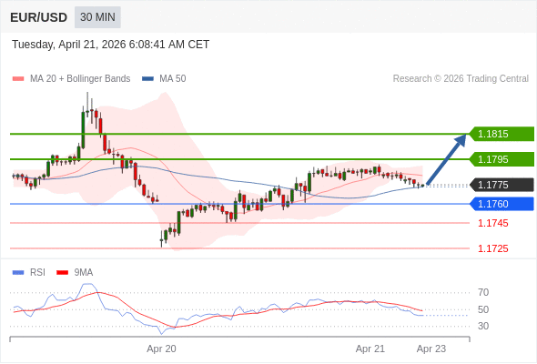 在 1.1760 之上,看涨,目标价位为 1.1795 ,然后为 1.1815 。