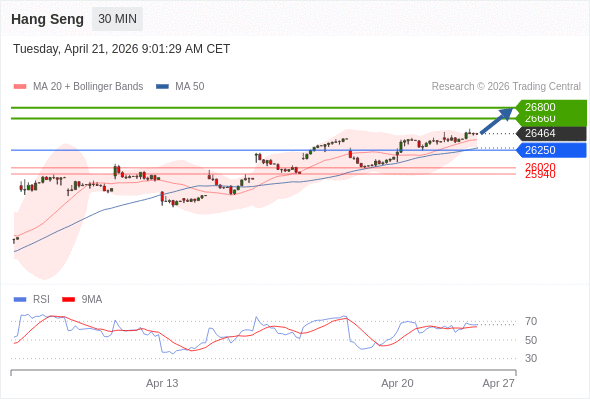 在 26250 之上,看涨,目标价位为 26660 ,然后为 26800 。