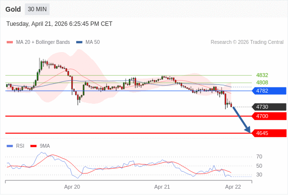 在 4782 之下,看跌,目标价位为 4700 ,然后为 4645 。