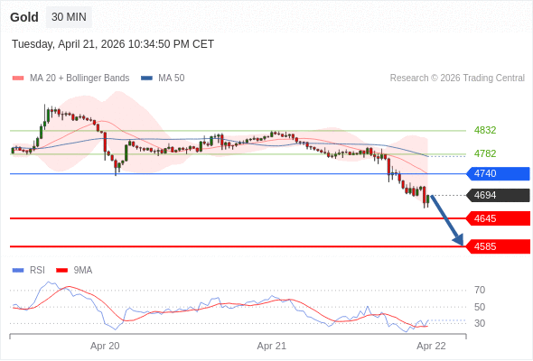 在 4740 之下,看跌,目标价位为 4645 ,然后为 4585 。