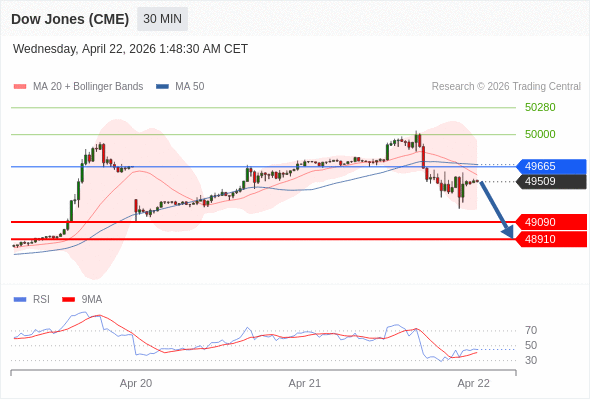 在 49665 之下,看跌,目标价位为 49090 ,然后为 48910 。